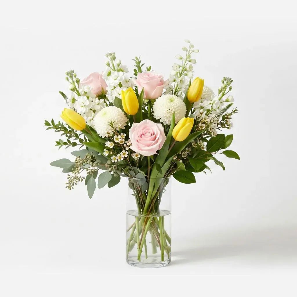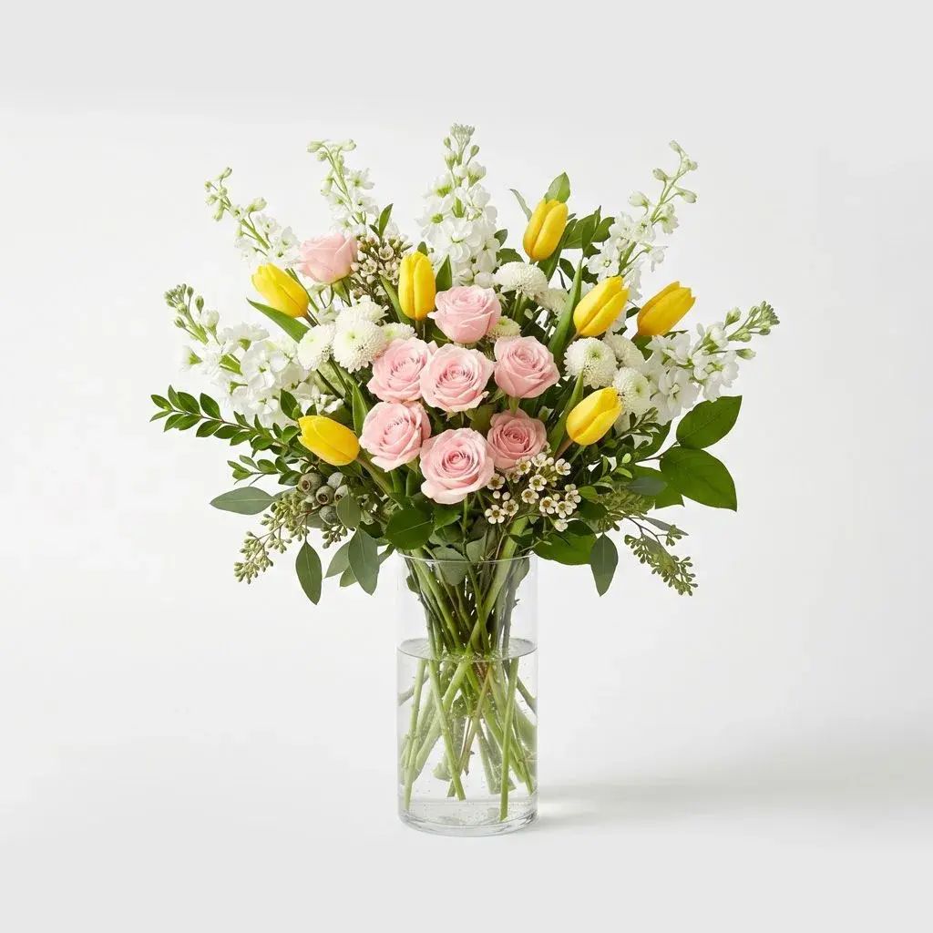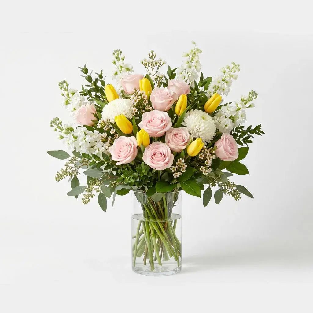 Golden Whisper is a refined floral arrangement designed with soft contrast and natural balance. Featuring warm tones and layered textures, it offers an elegant, polished option for Mother’s Day flowers.